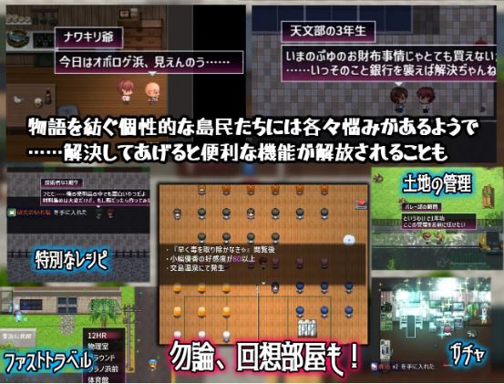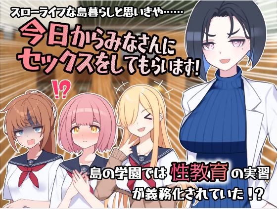 “从今天起,你们都要进行性行为!” 在这个世界里,为了应对不断下降的出生率,“实践训练”已成为性教育的必修内容。 在喧闹的教室里,你曾经只把女生当成同班同学,如今却被随机配对。 从此以后,你们每天都要进行性行为……练习造人。 如果性教育包含实践训练会怎样? 我们把那些在情色漫画中才会出现的场景搬进了游戏世界。 有时是你的同学,有时是你的学长,有时甚至是成年女性——你将与形形色色的女性进行实践训练,并 在一个偏远、充满自然气息的乡村岛屿上度过你的青春时光,钓鱼、烹饪、制作手工艺品。