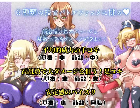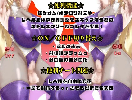 和失败场景 ◆ 11种支线事件 * 包括开场的色情场景和事件战斗。 ◆ 图片数量 :基础版:约35张,变体版:约320张 * 不包括音效图片和射精、汗水等细微变化。 ◆ 超过10万字的海量内容! ☆未来更新 ・我计划更新之前忘记添加的音效! (由于技术能力不足,不知 为何战斗中“显示→隐藏→显示”的循环一直无法实现,卡了一个月左右,然后就忘了。 因此,战斗中可能只会实现一次性全部显示的效果 😉